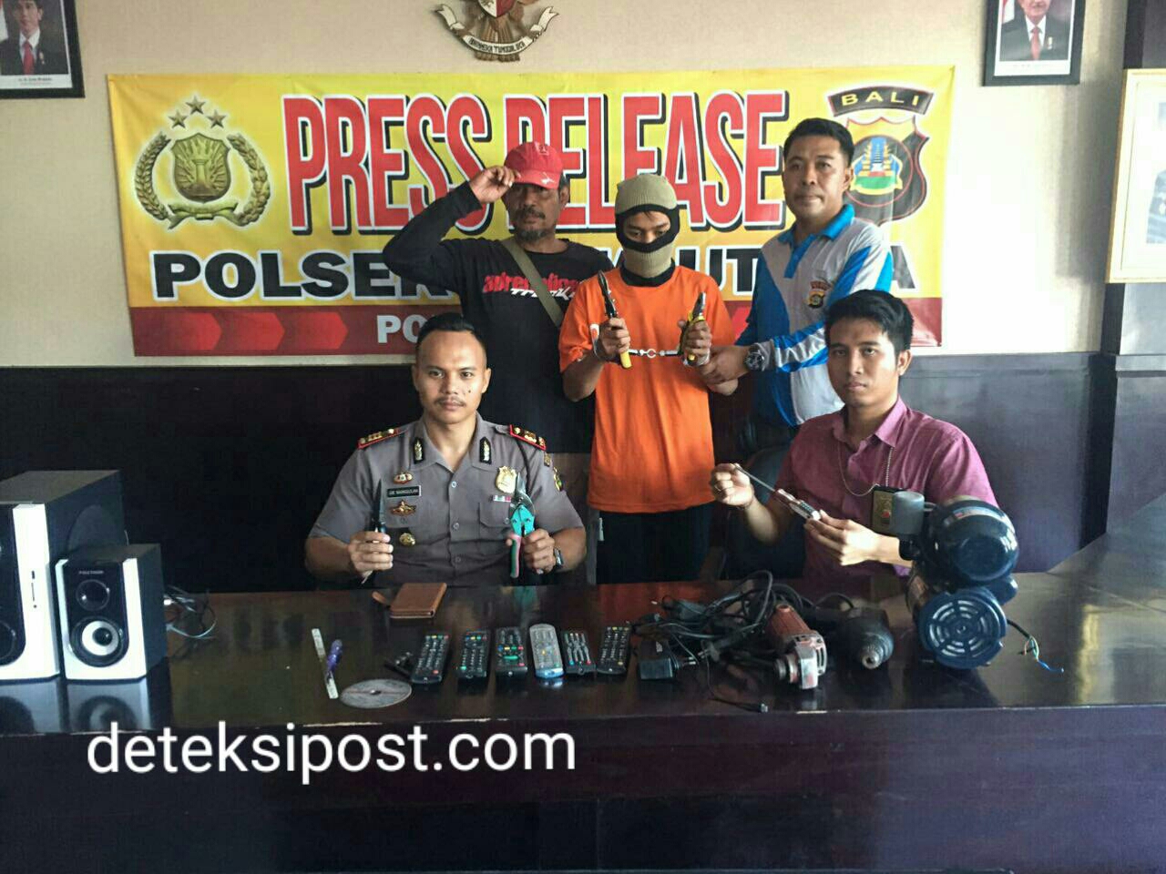 DETEKSIPOST.COM – Sat Reskrim Polsek Kuta Utara berhasil mengamankan pelaku pencuri bernama; Susanto (22 ), Asal Bondowoso, Jawa Timur, alamat kos lingkungan bumi keerta kerobokan kaja kamar no 4, Minggu.(15/4).