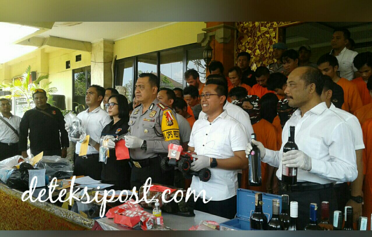 Kapolresta Denpasar, Komisaris Besar. Hadi Purnomo, didampingi Kasat Narkoba. Kompol Aris Purwanto dan Kasat. Reskrim Kompol.Arta Ariawan. menjelaskan, tahun 2017 jumlah pelanggaran sebanyak 120 kasus dan tahun 2018 meningkat menjadi 130 kasus.”ungkap Hadi Purnomo.