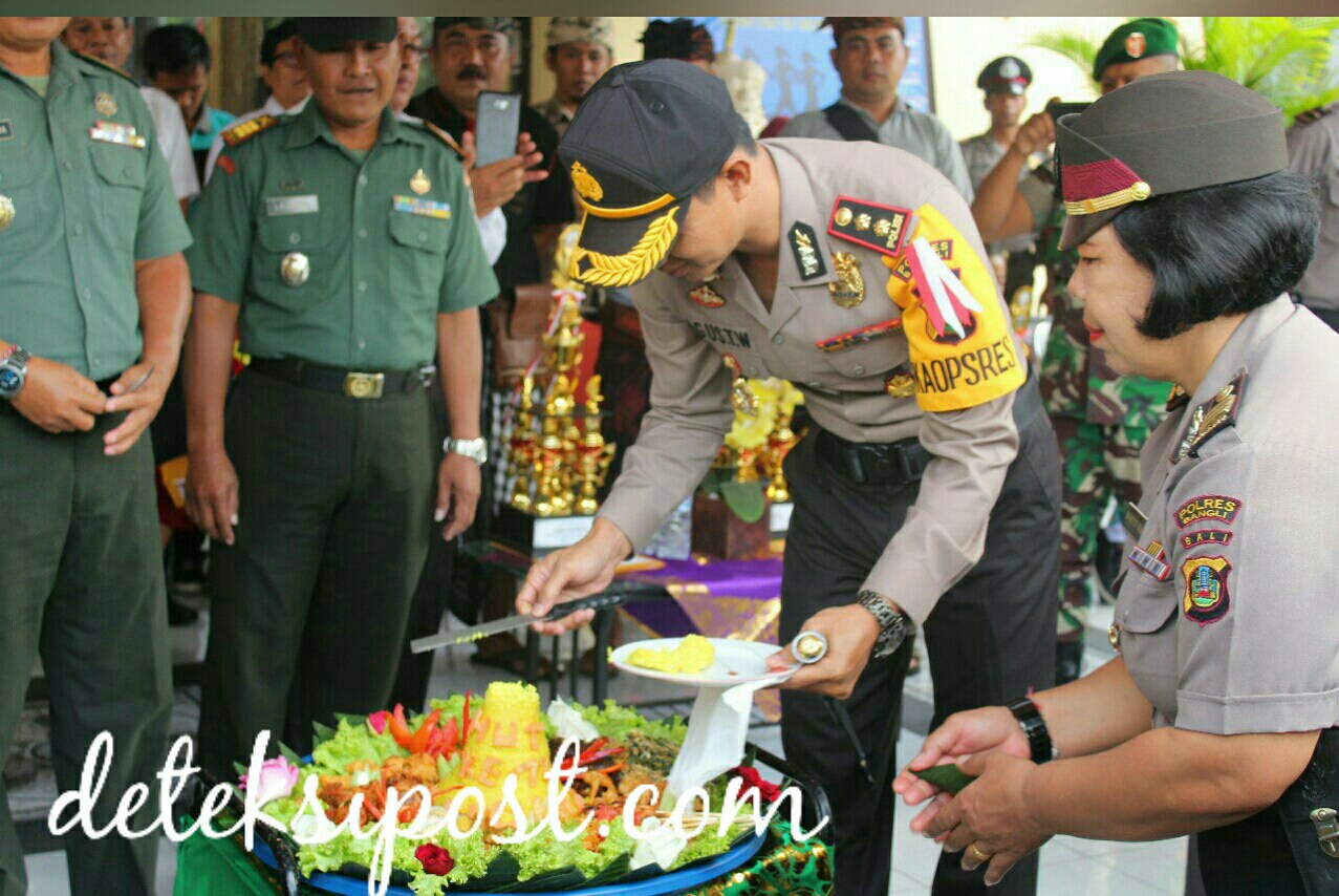 Acara dilanjutkan dengan Pemotongan Nasi tumpeng oleh Kapolres Bangli, potongan yang pertama diberikan kepada Dandim/1626, dalam kesempatan tersebut Kapolres Bersama dandim saling suap sebagai bentuk kebersamaan TNI-Polri potongan selanjutnya diberikan kepada anggota yang menerima kenaikan pangkat.
