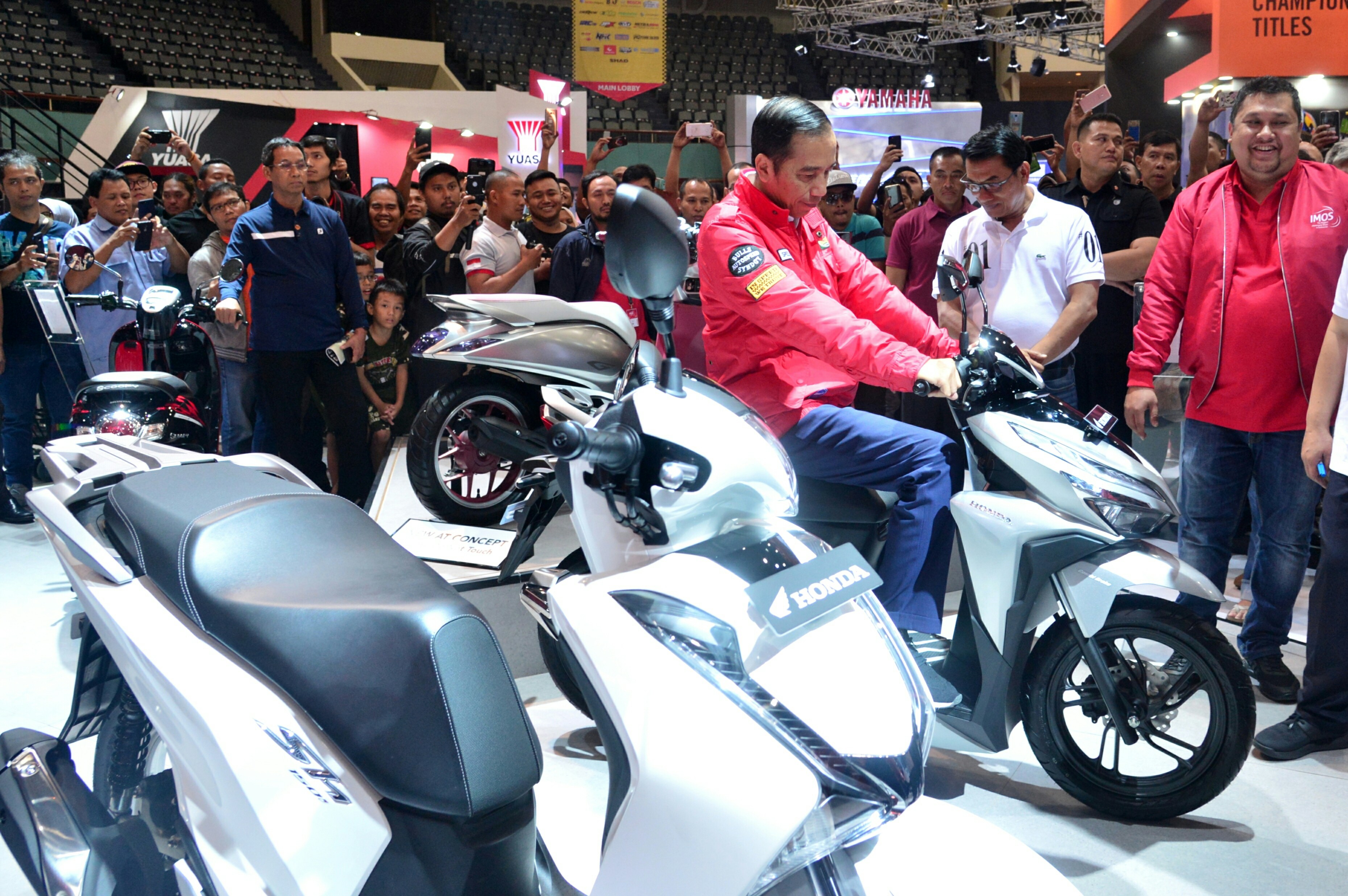 Tiba pukul 12.30 WIB, Presiden yang memakai jaket merah tampak didampingi oleh Sekretaris Kabinet Pramono Anung dan Kepala Staf Kepresidenan Moeldoko. Kedatanganya ini disambut langsung oleh Presiden Direktur PT Amara Pameran Internasional Andy Wismarsyah dan Ketua Asosiasi Industri Sepeda Motor Indonesia (AISI) Yohanes Loman.