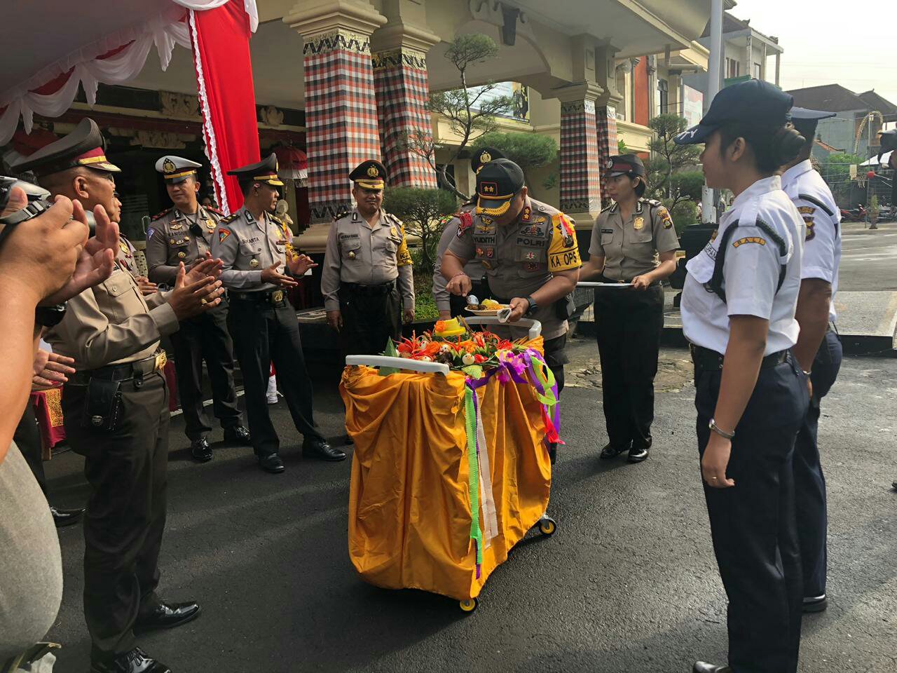 Mulai dari tim berseragam Satpol PP, Dinas Perhubungan, Satuan Pengamanan, Terminal Mengwi hingga Kepolisian dari Pejabat utama, para perwira maupun bintara siap berbaris terlihat siaga.