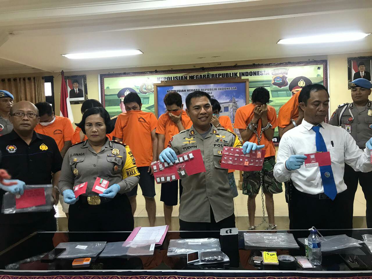 DETEKSIPOST.COM – BADUNG, Polda Bali – Polres Badung, “Baru 2 (dua) minggu menjabat Kasatresnarkoba Polres Badung AKP I Komang Ngurah Sucahayadi, Sita barang bukti yang berupa, 11 butir ecstasy, 10,31 gr. brutto Sabhu dan 0,54 gr. Brutto ganja, dari 7 ( tujuh) pelaku narkoba dua diataranya merupakan pengedar sekaligus Oknum Ormas. Rabu (20/02/19)