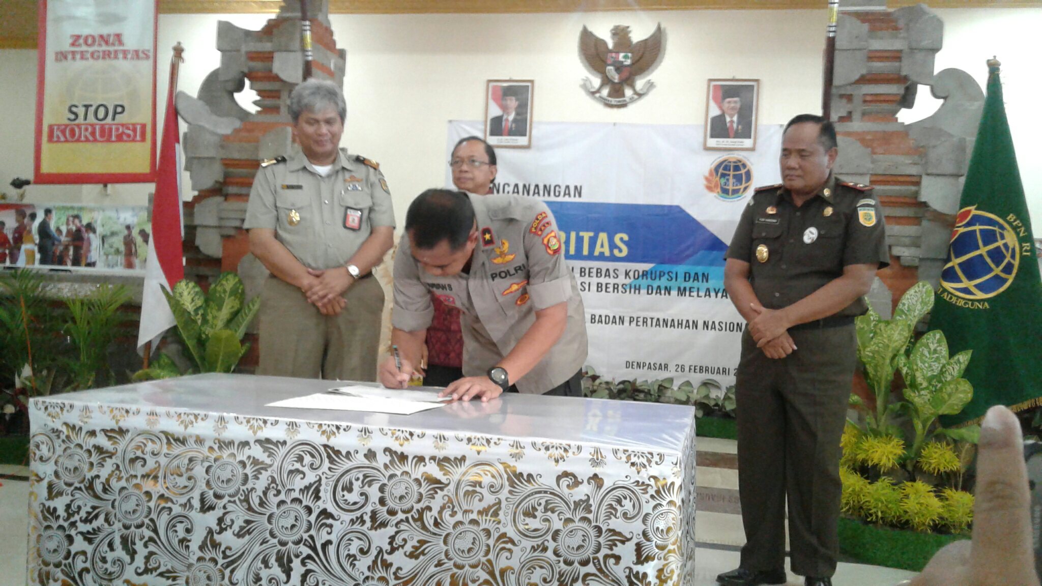 DETEKSIPOST.COM – DENPASAR – BALI, Wakapolda Bali, Brigjen Pol. Drs. I Wayan Sunartha menghadiri kegiatan pencanangan zona integritas menuju Wilayah Bebas Korupsi (WBK) dan Wilayah Birokrasi Bersih dan Melayani (WBBM) di Aula Kantor Wilayah Pertanahan Nasional Provinsi Bali, Selasa (26/2) sekitar pukul 10.30 Wita.