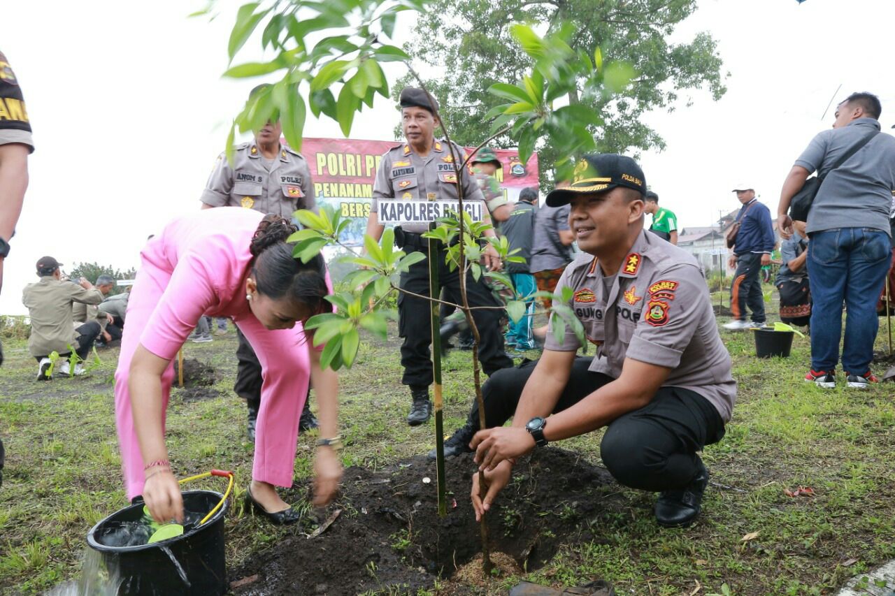 Deteksipost.com – Bali – Polda Bali, Polres Bangli Kapolres Bagli AKBP I Gusti Agung Dhana Aryawan, S.I.K.,M.I.K., bersama jajarannya gelar penanaman 1999 bibit pohon secara serentak dalam rangka Polri Peduli Penghijauan, Kamis 9 Januari 2020.