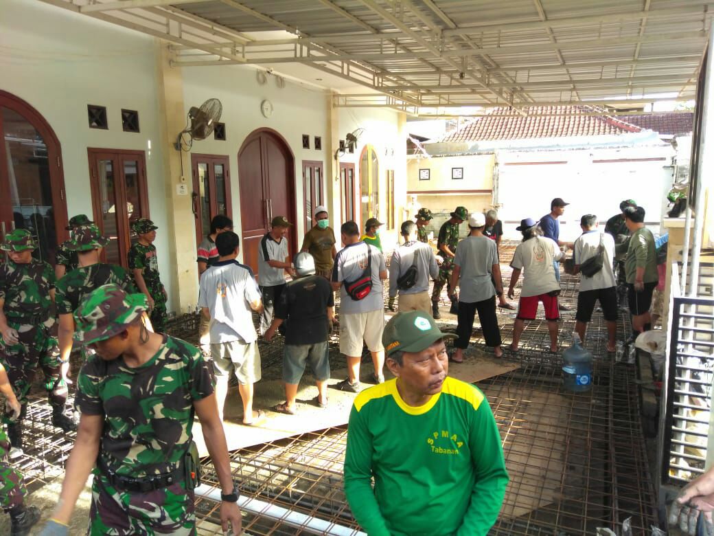 Babinsa Banjar Anyar Sertu Fatholbari bersama Ketua Taqmir Mesjid Haji Warso, Ketua RWM Haji Endra Trianta dan Ketua Panitia Pembangunan Mesjid Muiz Arrozak serta warga anggota RWM berbaur dengan Personel Kodim 1619/Tabanan serta anggota Rindam IX/Udayana saling bahu membahu untuk melakukan pengecoran.