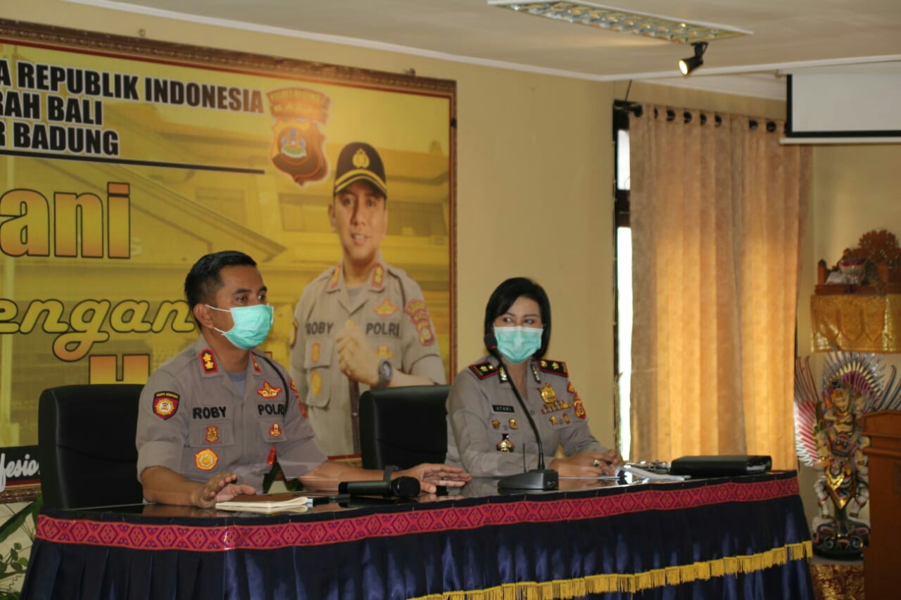 AKBP Roby accompanied by Deputy Chief of Police Ni Putu Utariani, SH expressed his gratitude for the hard work of all personnel in providing appeals and coordination with leaders in the community, so that the prevention of Corona Virus in the community could run well.