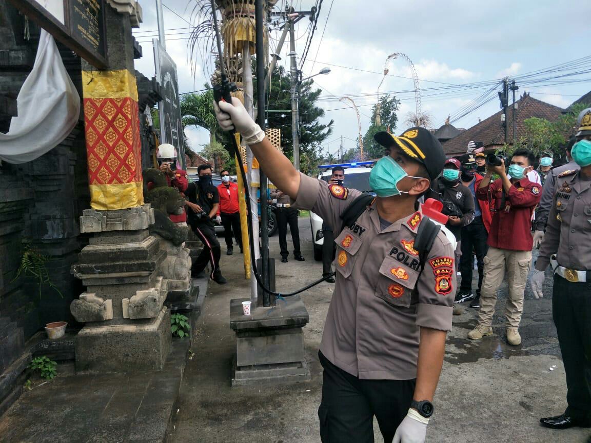 Deteksipost.com – Bali – Polda Bali, Polres Badung, Kepala Kepolisian Resor Badung AKBP Roby Septiadi, SIK langsung pimpin penyemprotan disinfektan, yang dilaksanakan secara serentak di wilayah kabupaten Badung, Bali. Selasa, (31/03), pukul 10.10 wita.
