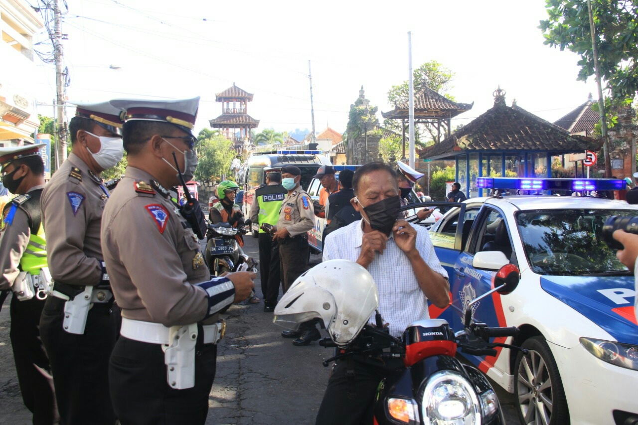 Deteksipost.com – Bali – Polda Bali, Polres Bangli – Upaya pencegahan dan penanggulangan penyebaran Corona Virus Disease (Covid-19) terus dilakukan jajaran Satlantas Polres Bangli. Seperti pada Kamis (9/4) di areal Pasar Kidul, Bangli. Sebanyak 500 lembar masker di bagikan di areal pasar milik Pemerintah Kabupaten Bangli terebut. Masker tersebut merupakan bantuan dari Polda Bali bekerjasama dengan Universitas Udayana (Unud).