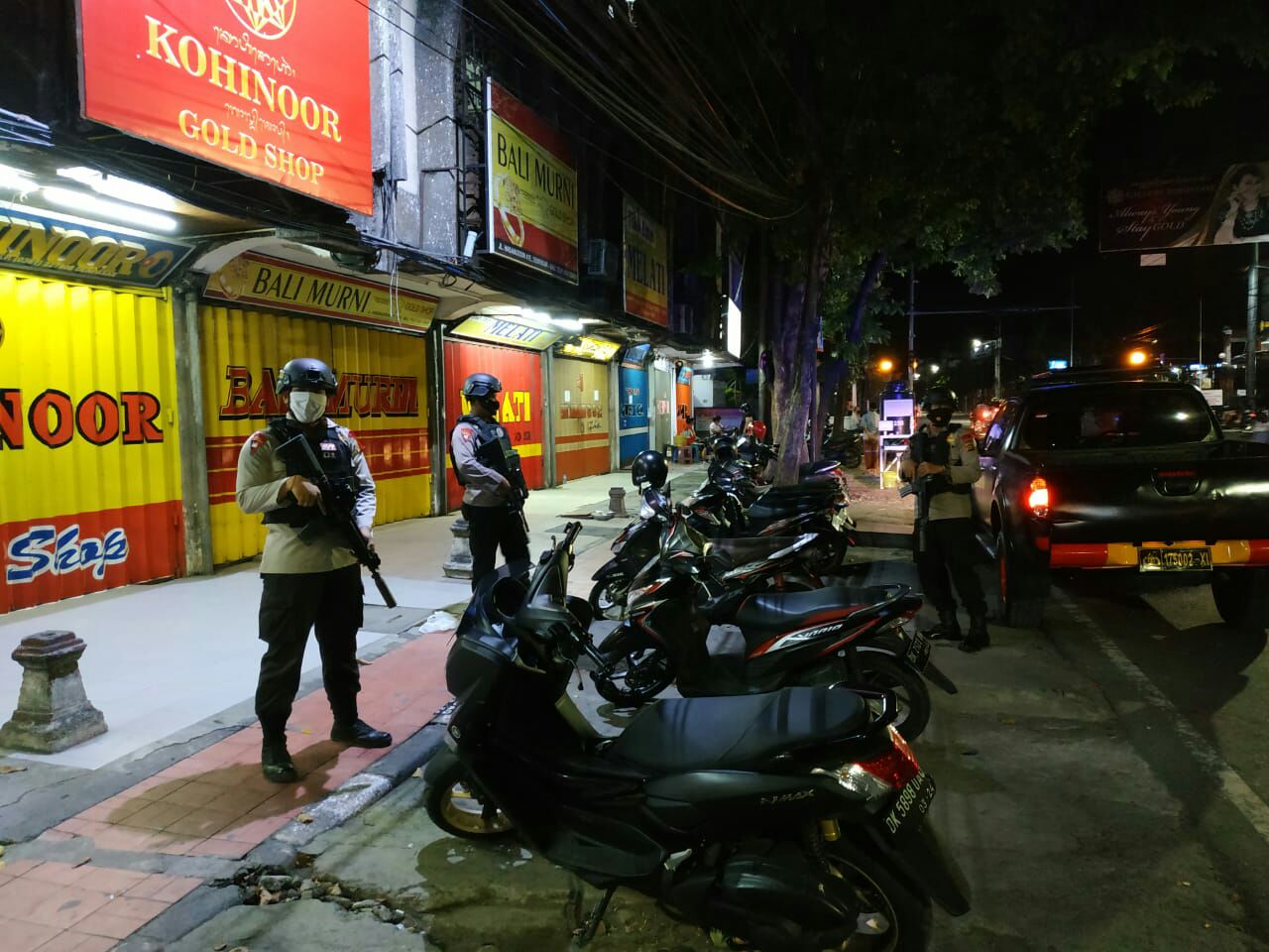 Adapun sasaran pertama patroli Subsatgas Brimob Ops Ketupat Agung dari mako Tohpati langsung mengarah pertokoan emas jl hasanudin Denpasar dan disana juga berdampingan dengan masjid ukuwah dan hasil yang ditemukan situasi seputaran pertokoan dan masjid ukuwah jl hasanudin Denpasar aman dan kondusif, tidak ada aktifitas sholat taraweh didalam masjid, info panitia memang sementara giat ditiadakan karena takut akan penularan pandemic covid-19, ujar AKP Karwa.