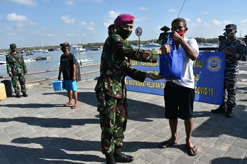 So that the social service carried out by the Navy Base (Lanal) Denpasar Bali was held together with elements of Posal Serangan Island and Serangan Village government to reduce the burden that is beingfall on fishing communities due to the corona virus pandemic (Covid-19), Wednesday (6/5/20/2020 2020 ).