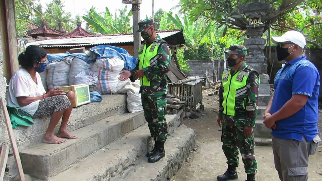 Ni Wayan Rinten salah satu penerima bantuan Sembako warga Banjar Mincidan, Desa Sulang sangat berterima kasih atas bantuan yang diberikan Kodim 1610/Klungkung.