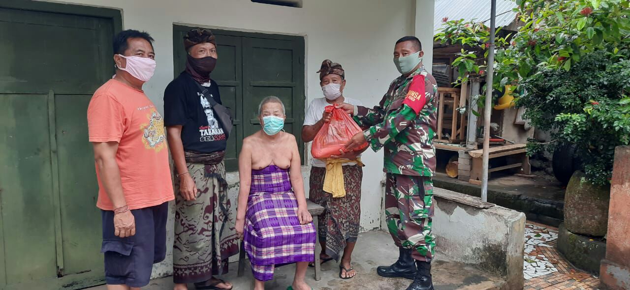 “Babinsa masing-masing Koramil menyerahkan bantuan dari Kodim 1619/Tabanan kepada warga yang kurang mampu dan terdampak COVID-19 di wilayahnya”, kata Kasdim.