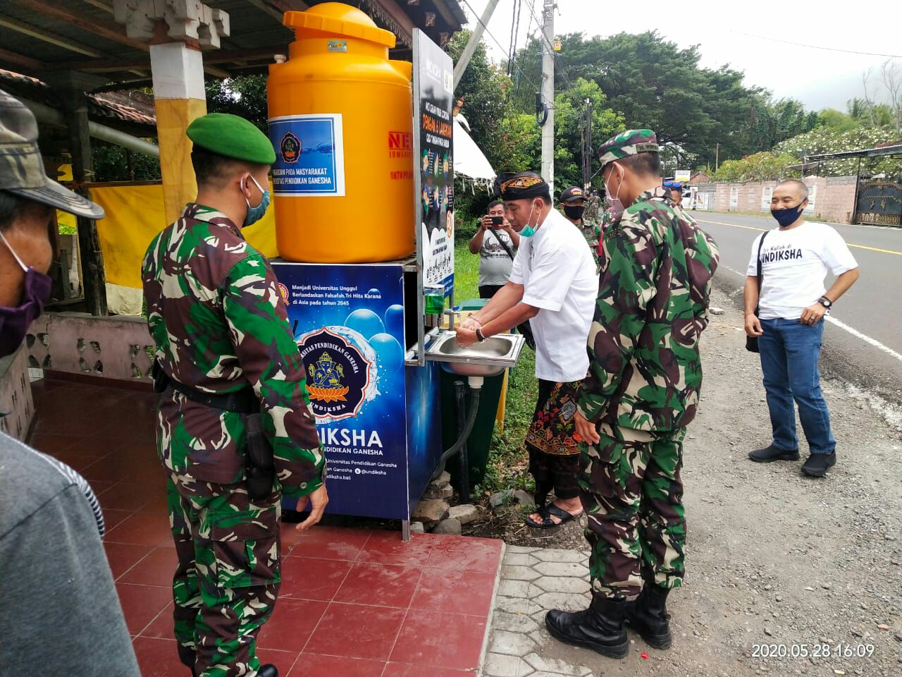 Dandim 1609/Buleleng Letkol lnf Muhammad Windra Lisrianto S.E.,M.I.K., bersama Rektor Universitas Undhiksa Singaraja Prof. Dr. Nyoman Jampel bersinergi menyerahkan bantuan wastafel di dua wilayah Kabupaten Buleleng yaitu di Kecamatan Banjar dan Kecamatan Busungbiu, Kamis (28/05/2020) kemarin.