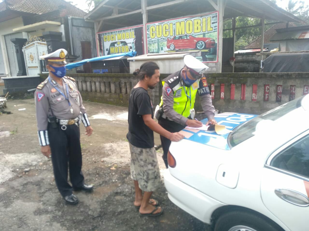 Iptu Sang Ketut Mariasa bersama anggota menegur warga yang tidak memakai helm, dan Masker, hal itu terjadi pada saat melaksanakan Patroli diseputaran Jalan Nusantara Kubu Bangli, Anggota yang mengetahui langsung memberhentikan warga tersebut untuk diberikan teguran,” jangan takut sama polisi takutlah pada keselamatan diri sendiri, jika terjatuh dari berkendara yang melindungi kepala kita adalah Helm, dan dihimbau juga Untuk Selalu memakai Masker Saat Beraktifitas untuk memitus rantai Virus Corona” Ujar Iptu Sang Ketut Mariasa.