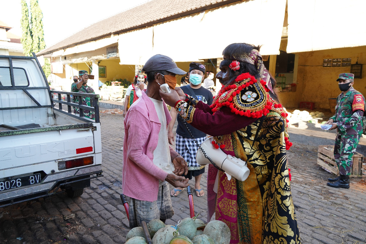 Kegiatan ini digelar oleh Korem 163/Wira Satya dengan melibatkan unsur Kodim 1611/Badung. Menariknya, sosialisasi dikemas dengan kesenian Bondres. Dua seniman Bondres yang merupakan Babinsa Jajaran Kodim 1611/Badung, yang juga seniman topeng, dilibatkan untuk menghimbau masyarakat agar disiplin menerapkan protokol kesehatan.