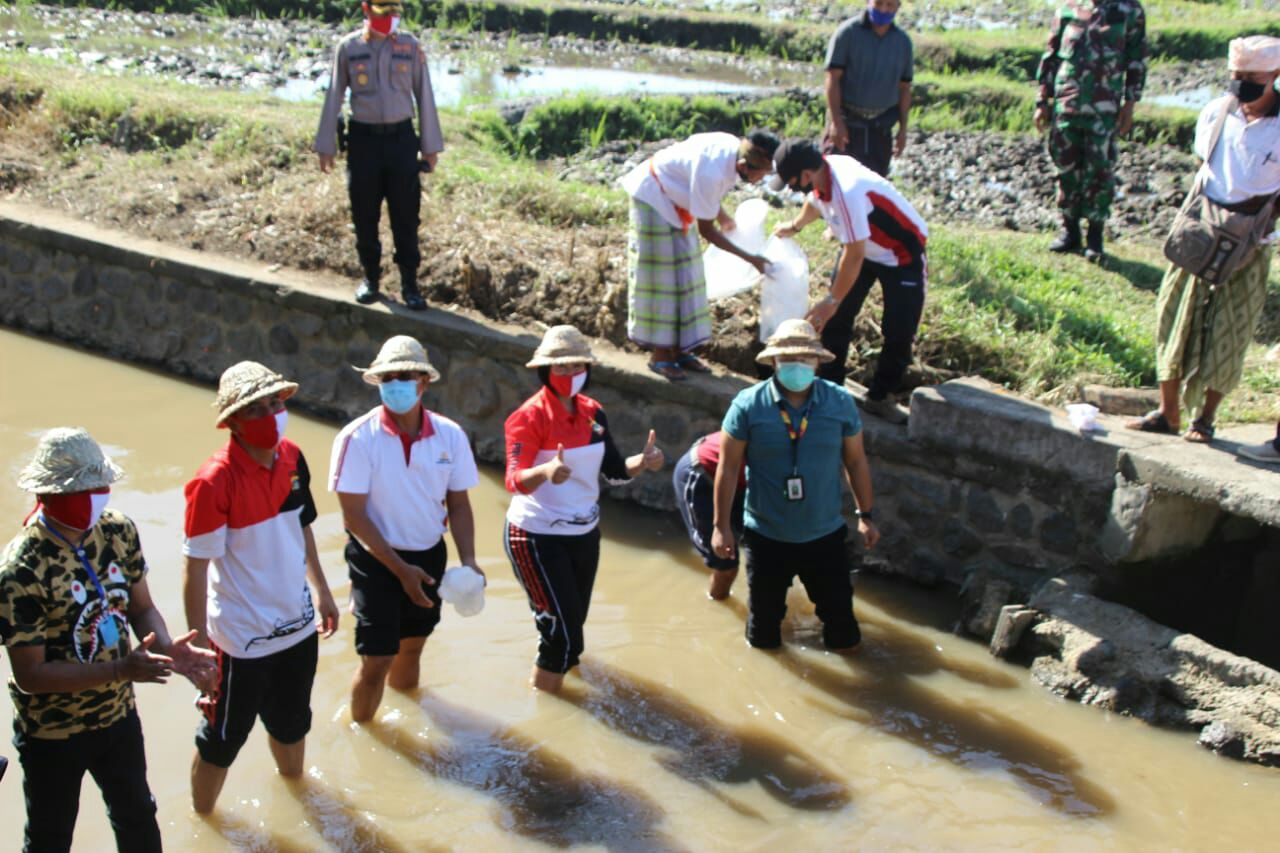 “Bibit padi ibrida, sayur mayur dan benih Ikan Nila yang serahkan kepada masyarakat langsung di tanam di lahan persawahan Subak Ayung Desa Buduk dan Sungai Subak Ayung milik warga, guna meningkatkan kesejahteraan masyarakat yang terdampak covid-19”, jelas Kapolres Badung.