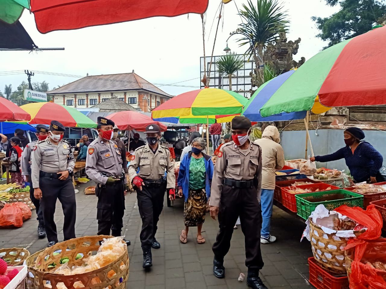 Pagi ini anggota Polsek Susut yang dipimpin Kanit Binmas Polsek Susut Aiptu Ketut Suparsa bersama Kanit Sabhara Aiptu Nyoman Kencana dan anggota jaga melaksanakan patroli harkamtibmas di pasar Kayumbua untuk menjaga situasi kamtibmas tetap kondusif serta edukasi Pendisiplinan kepada masyarakat tentang pentingnya mematuhi protokol kesehatan. Rabu pagi (5/08/2020)