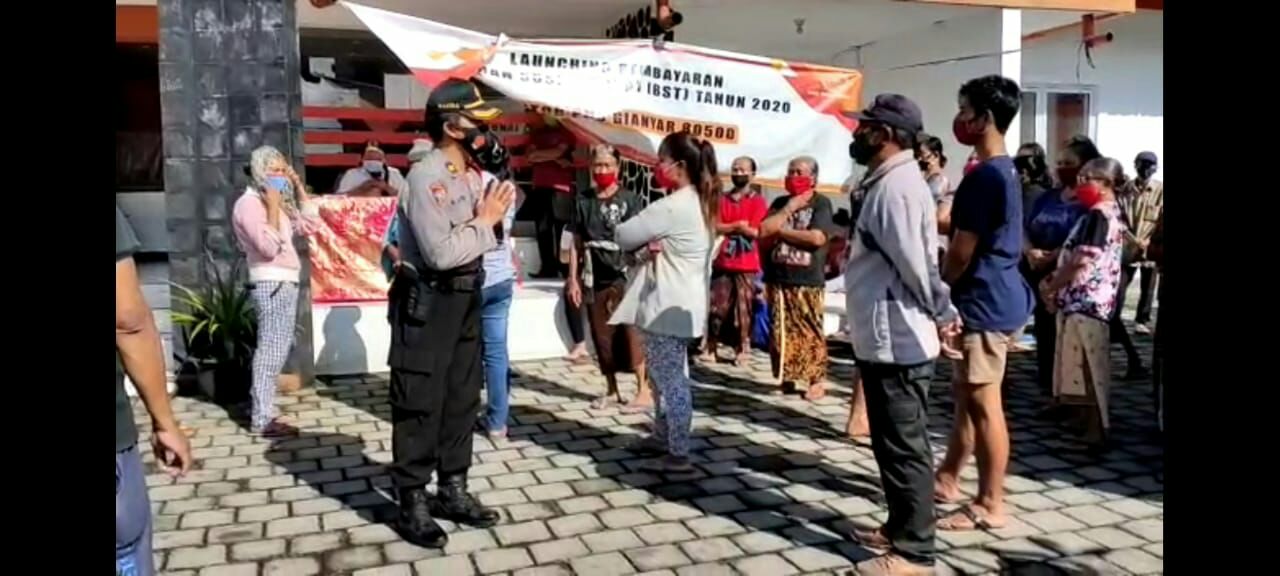 Kabag Ops Polres Gianyar Kompol I Wayan Latra, S.H., M.H. selaku Karendal Opsres kali ini melaksanakan penertiban kepada masyarakat Kecamatan Tegalalang yang menerima Bantuan Sosial Tunai ( BST) di kantor pos Tegalalang.