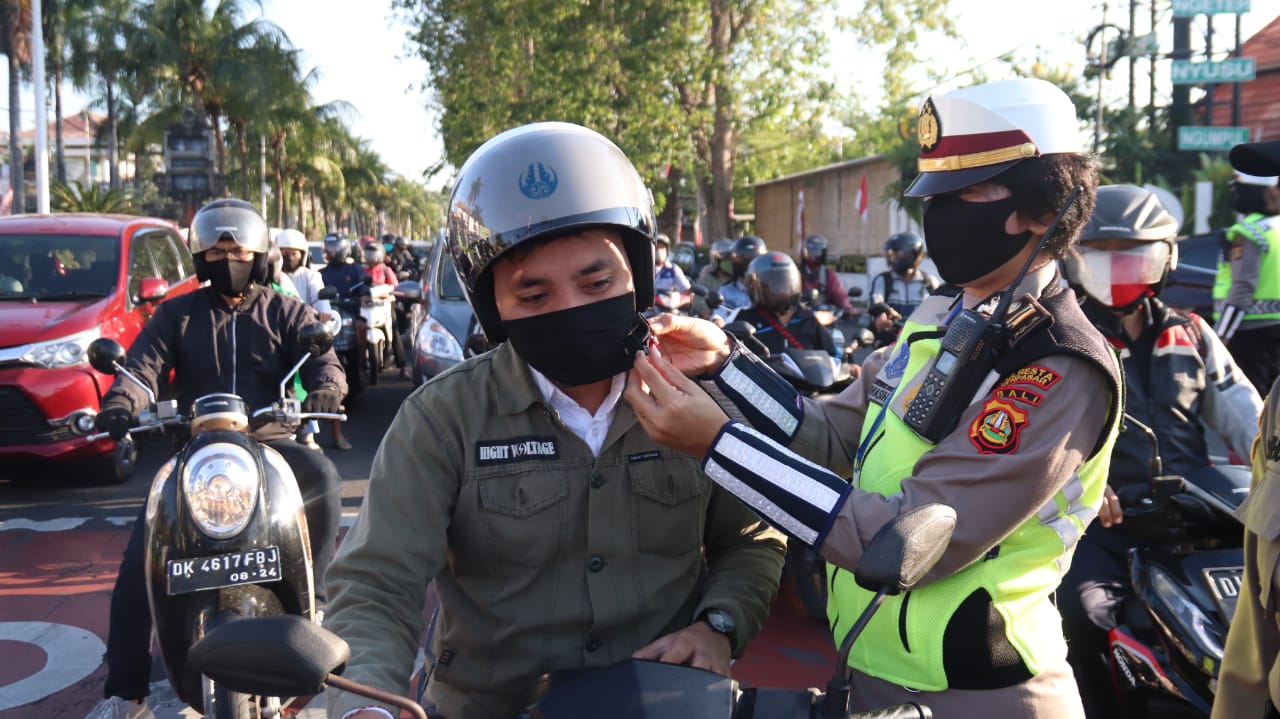 Tidak kurang dari 15 helm dan 50 masker yang dibagikan secara gratis kepada pengendara oleh Polwan Polresta Denpasar ini.