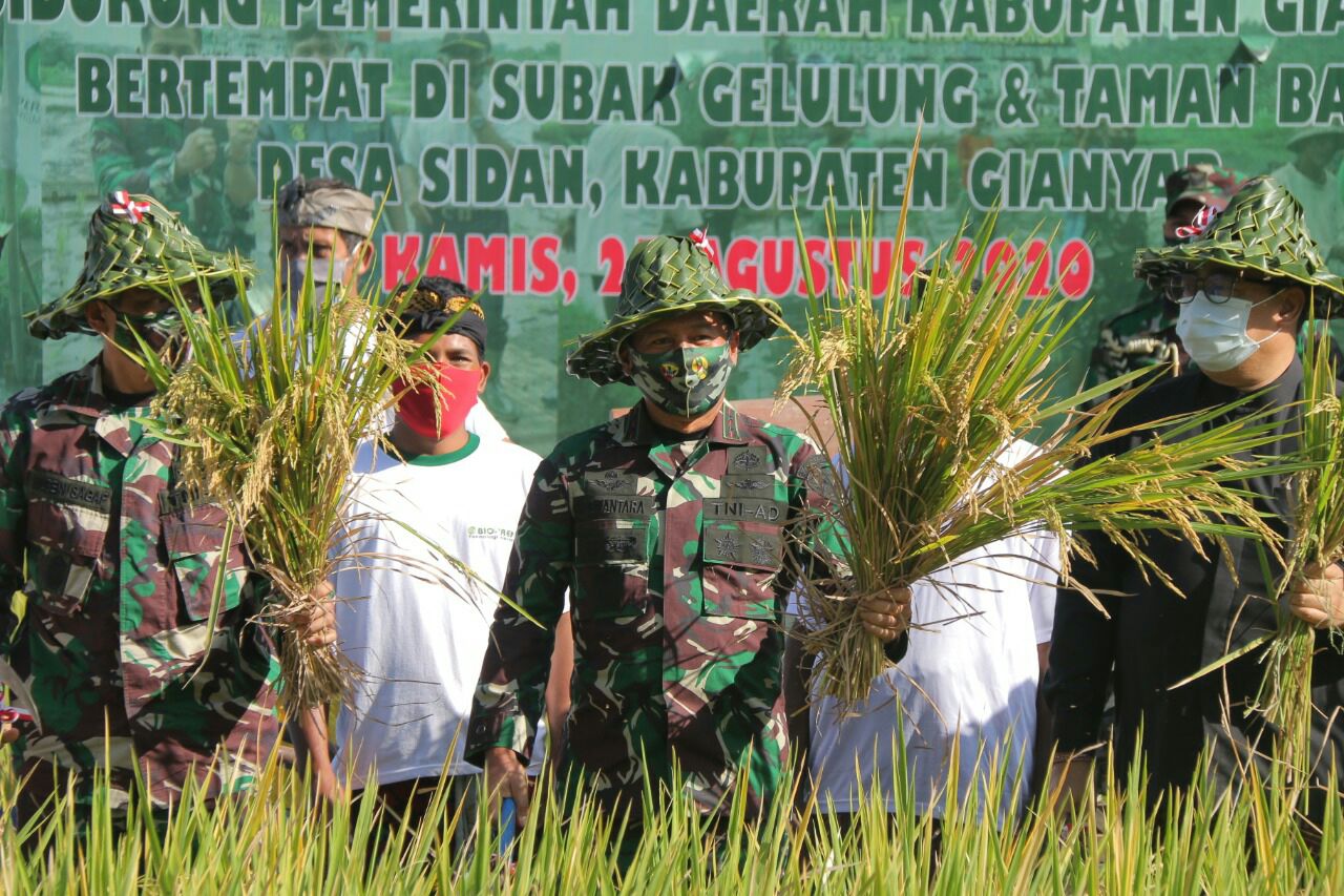 Saat ditemui awak media, Pangdam mengatakan bahwa kegiatan yang dilaksanakan berupa panen padi perdana ini merupakan upaya kerjasama antara Kodam IX/Udayana bersama PBL Bali, PT. Talitha Grup dan Pemda Kabupaten Gianyar.