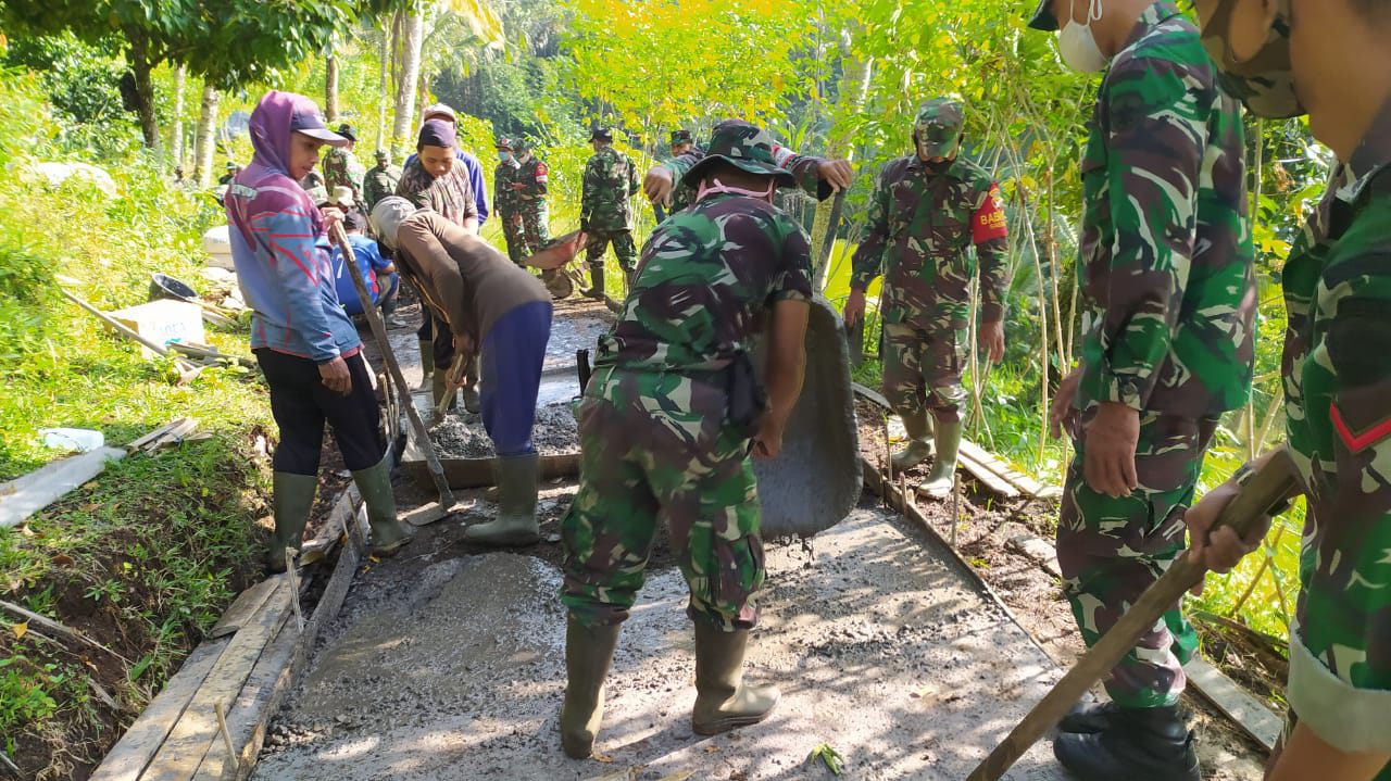 Kodim Tabanan Kembali Bangkitkan Warga Dengan Karya Bakti, Beton Akses Jalan Pedesaan.