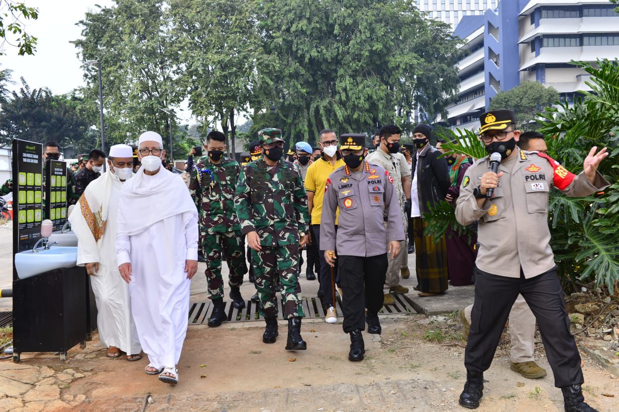 Selain di Cibis Park, Panglima dan Kapolri juga mengunjungi vaksinasi massal di kantor Himpunan Pengusaha Muda Indonesia (HIPMI) dan Pusat Pelatihan SDM Kementerian Kesehatan (Kemenkes).