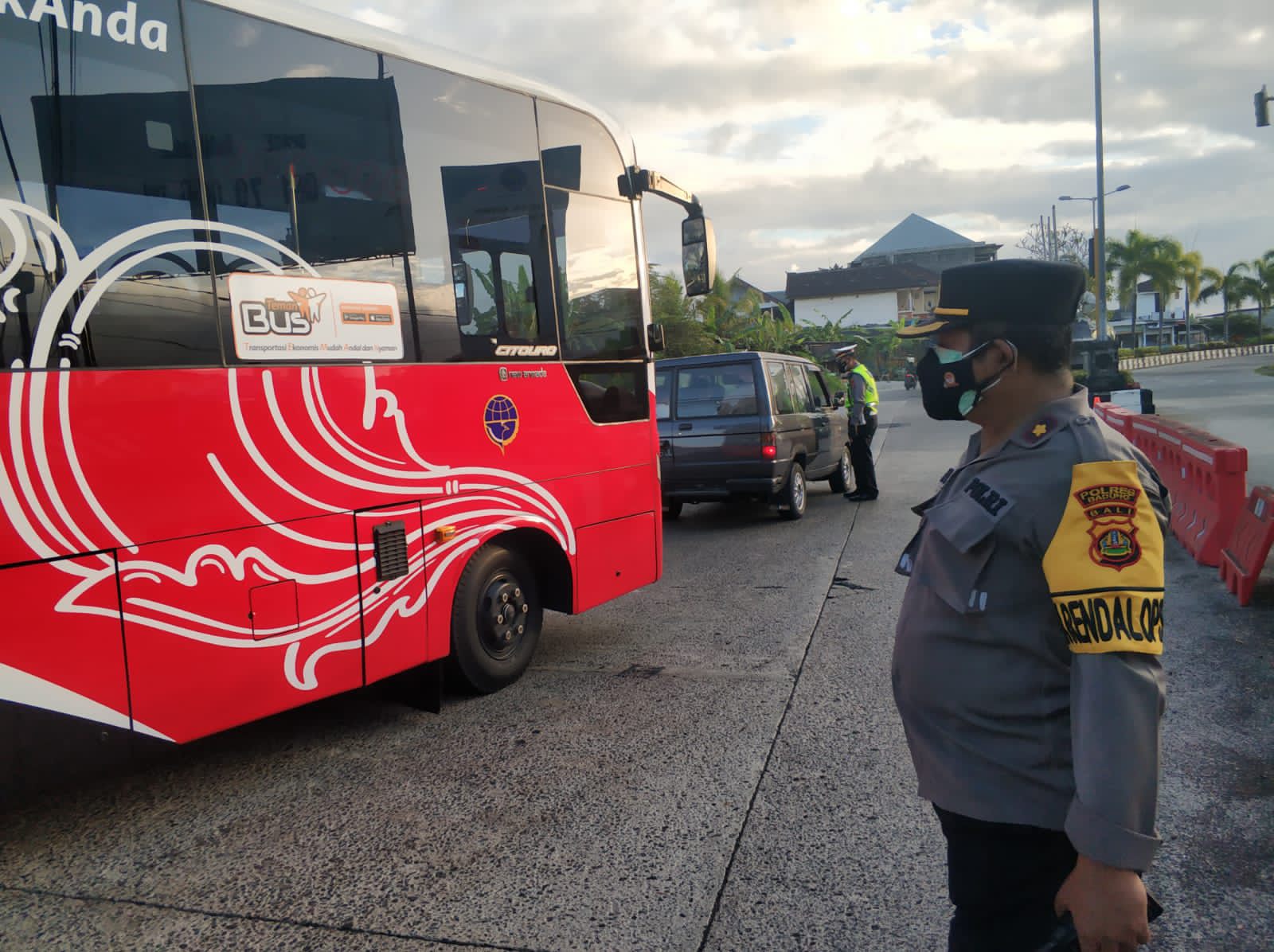 Deteksipost.com – Bali – Polda Bali, Polres Badung Kepala bagian operasi Polres Badung Kompol I Putu Ngurah Riasa, SIP melaksanakan pengecekan di Pos Penyekatan jalan Raya Mengwitani tepatnya di pintu masuk Terminal Mengwi, Badung, Bali. Minggu, (18/7) pagi 07.00 WITA.