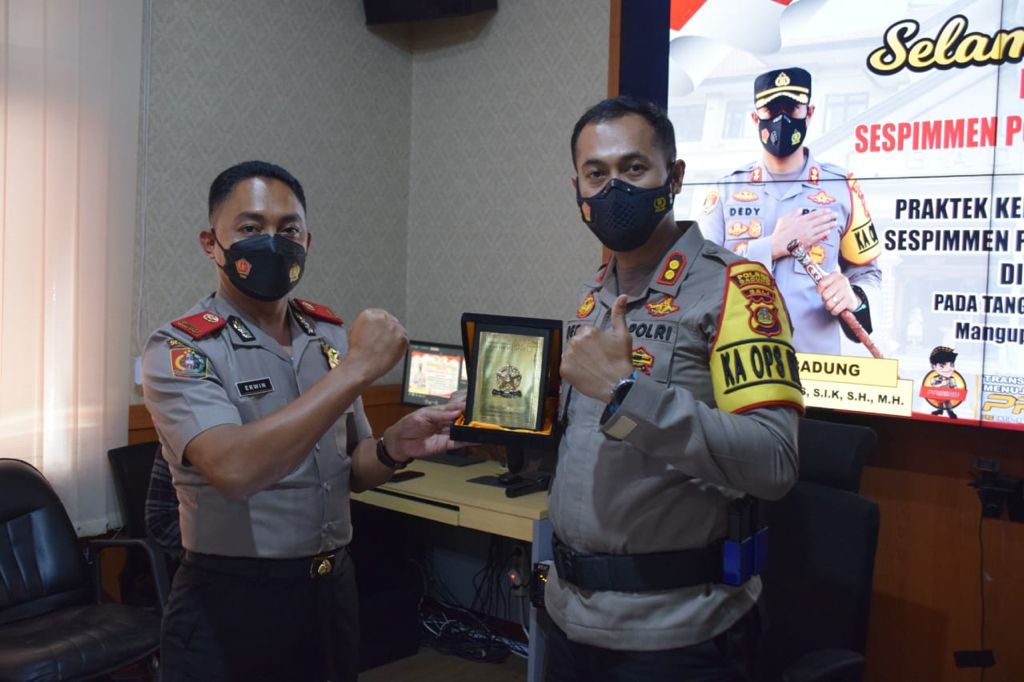 “Kami merasa terhormat, wilayah hukum Polres Badung, bisa dijadikan Praktek Kerja Profesi (PKP) Peserta didik Sespimmen Polri Dikreg Ke-61 T.A 2021,” Ucap Kapolres usai penyerahan Cinderamata/ Plakat dari Peserta didik Sespimmen Polri Dikreg Ke-61 T.A 2021 kepada Kapolres Badung.
