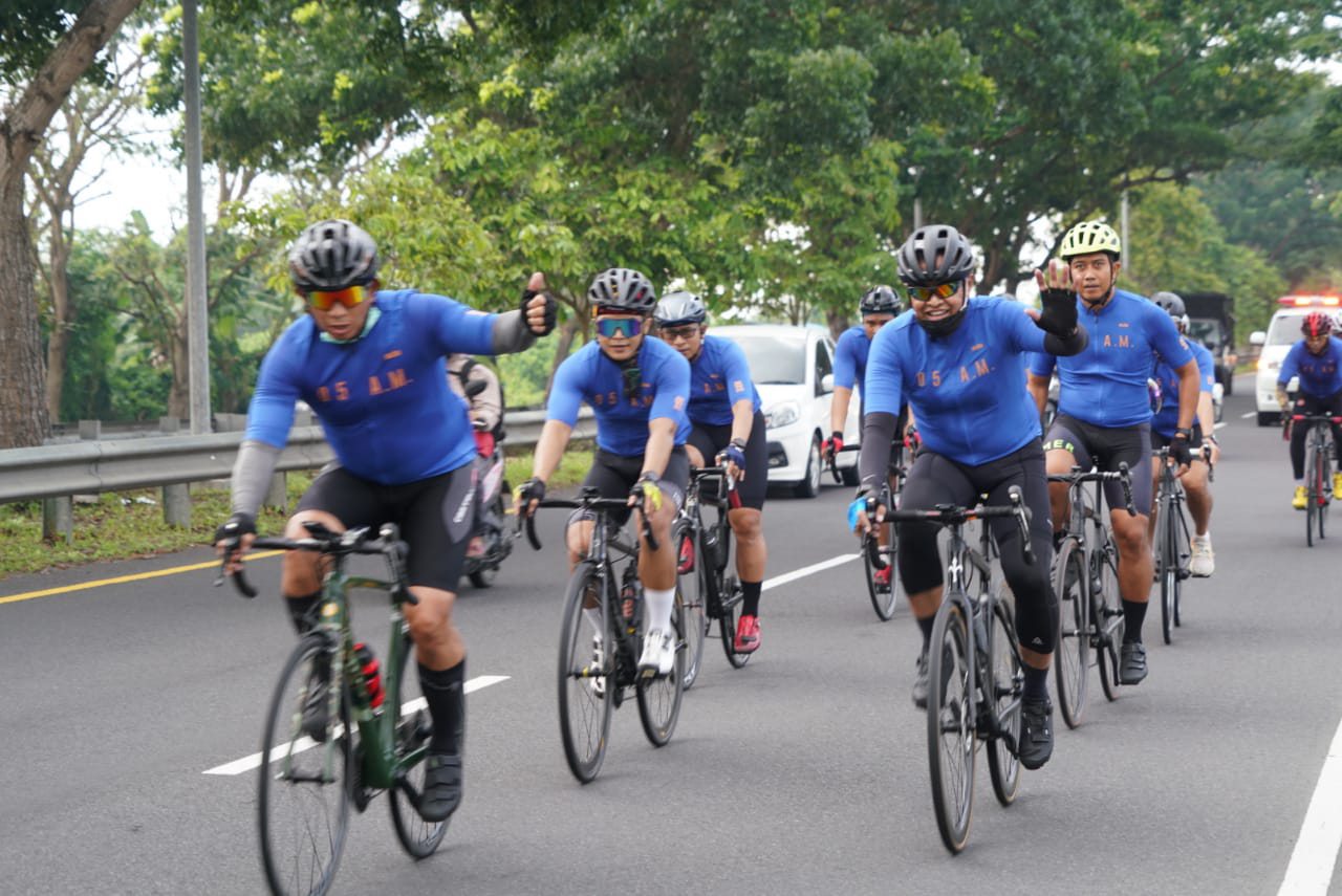 Bali – deteksipost.com – Disela jadwal melaksanakan Wasev TMMD, Irjenad Letjen TNI Benny Susianto, S.I.P., pada Jumat (1/1/2021) menyempatkan waktu untuk tetap menjaga kebugaran melalui olahraga bersepeda (Gowes) yang didampingi Kasdam IX/Udayana Brigjen TNI Harfendi, S.I.P., M.Sc., bersama Tim Gowes Kodam IX/Udayana.