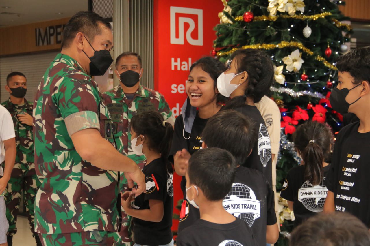 BALI – DETEKSIPOST.COM – Momen perayaan Natal 2021 dan Tahun Baru 2022 (Nataru), Pangdam IX/Udayana Mayjen TNI Maruli Simanjuntak, M.Sc., berbagi kasih bersama 200 anak-anak panti asuhan dengan mengajak belanja bersama di Mall Ramayana Bali yang berlokasi di Jalan Diponegoro No. 103, Denpasar, pada Selasa (21/12/2021).