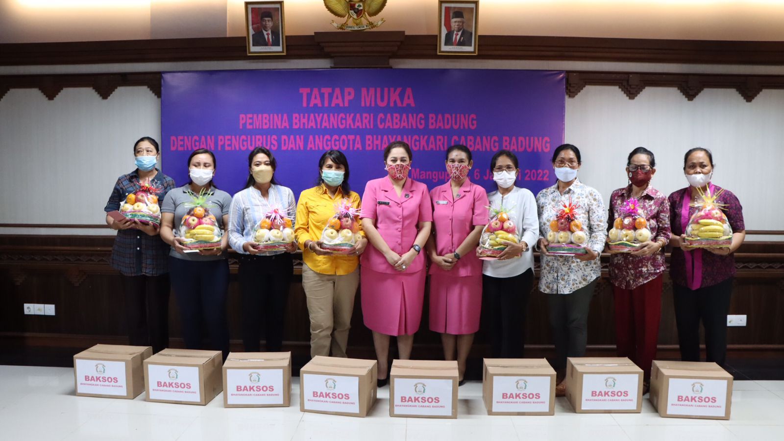 Kegiatan dilanjutkan dengan pemberian bingkisan oleh Ibu Ketua Bhayangkari Cabang Badung kepada ibu-ibu Bhayangkari yang telah purna tugas.(tim).