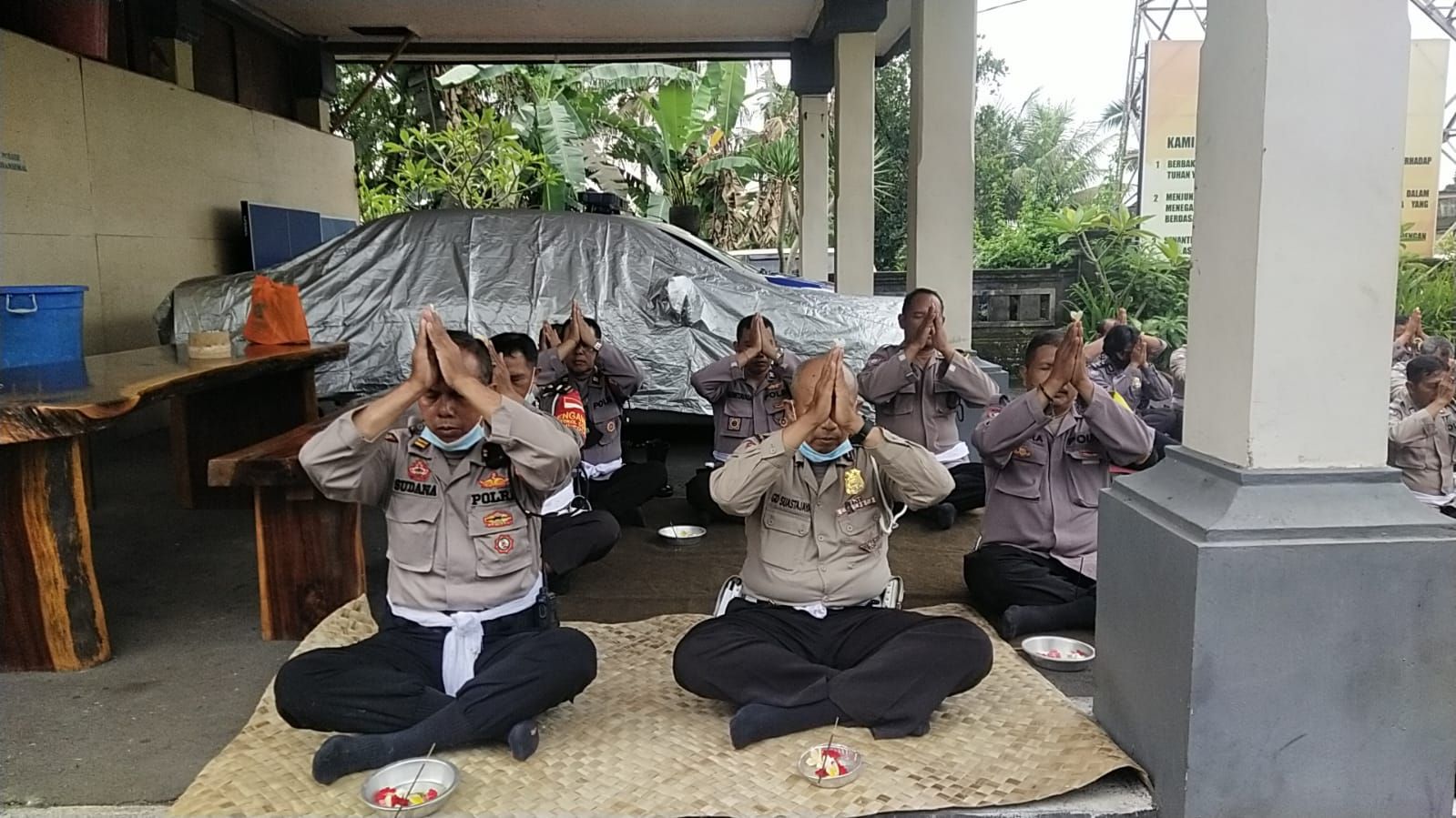 Persembahyangan ini dituntun oleh pemangku Polsek Abiansemal Bripka I Wayan Puasa yang di hadiri Kapolsek Kompol Ruli Agus Susanto, S.H., M.H.