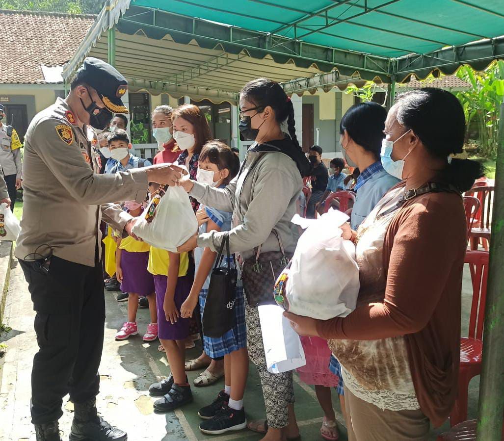 Kegiatan tersebut diakhiri dengan pembagian sembako geratis kepada siswa Sekolah Dasar Taman Tirta yang telah menerima Vaksinasi dosis kedua.(tim).
