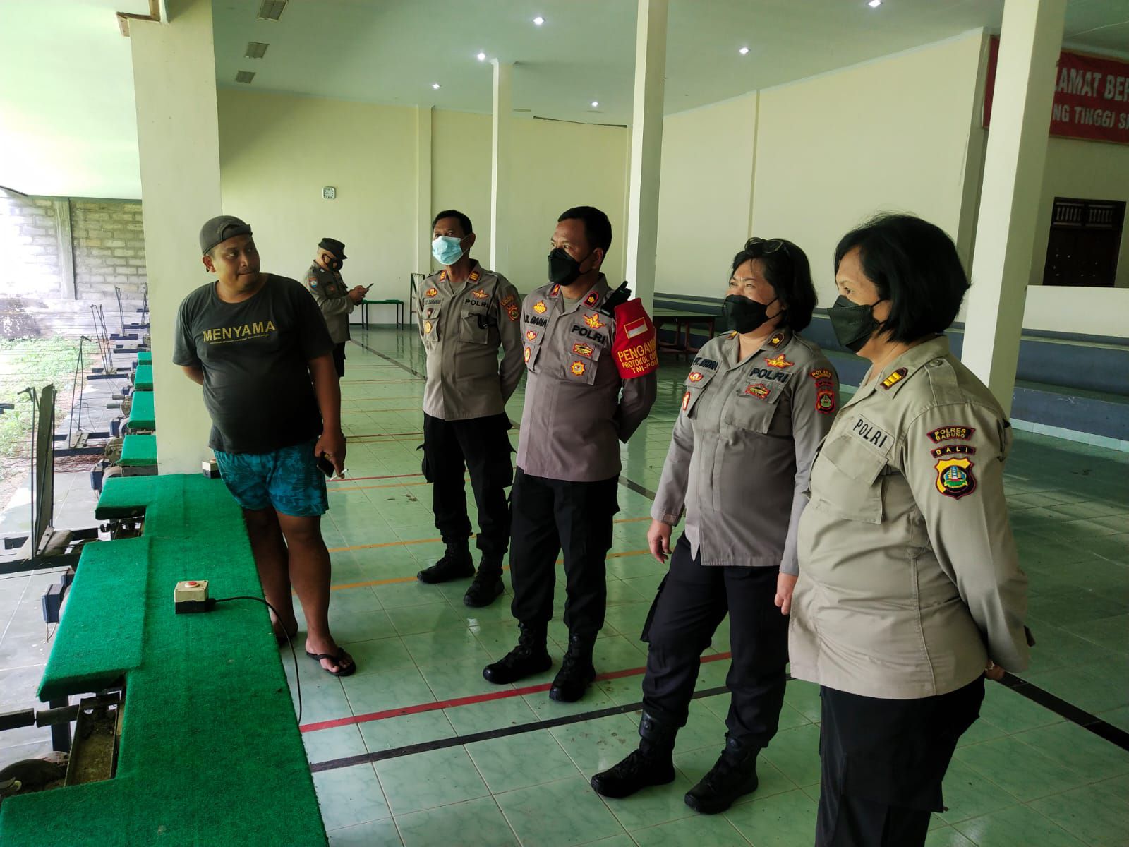 BALI – DETEKSIPOST.COM – Polda Bali, Polres Badung Wakapolres Badung Kompol I Ketut Dana, SH didampingi Kabag SDM Kompol Ni Luh Putu Indra Puspani,.S.Sos, M.Ap mengecek kesiapan lapangan Tembak, baik kebersihannya maupun yang menjadi sasaran yang akan digunakan latihan menembak besok pagi dalam mengasah dan meningkatkan kemampuan menembak di Lapangan Tembak Perbakin Badung, Br. Karangjung, Desa Sembung, Kecamatan Mengwi, Kabupaten Badung, Bali. Kamis, (10/2) siang 13.10 wita.