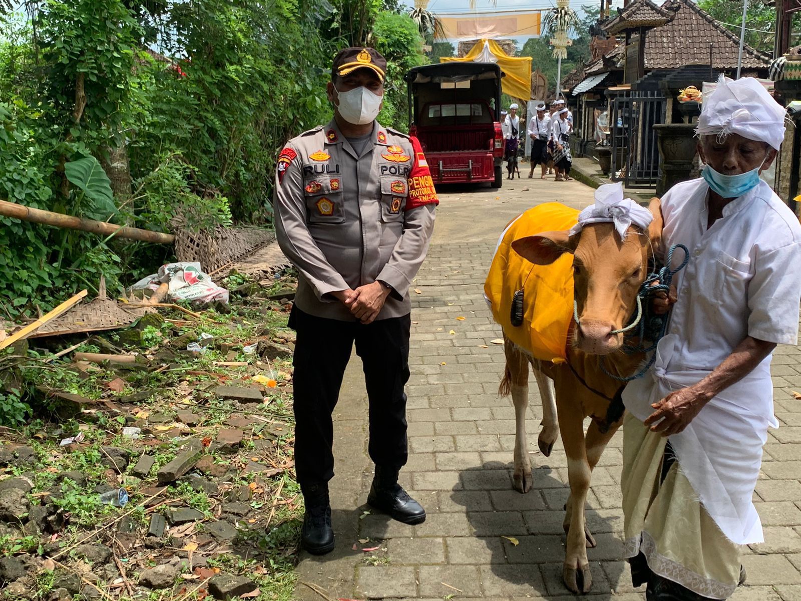 BALI – DETEKSIPOST.COM – Polres Badung Polsek Abiansemal Kapolsek Abiansemal Kompol Ruli Agus Susanto,S.H.M.H. memantau tempat Upacara Nyekah ( Atma Wedana) di Banjar Jempeng Desa Taman Kecamatan Abiansemal Kabupaten Badung. Selasa (22/3) pagi.