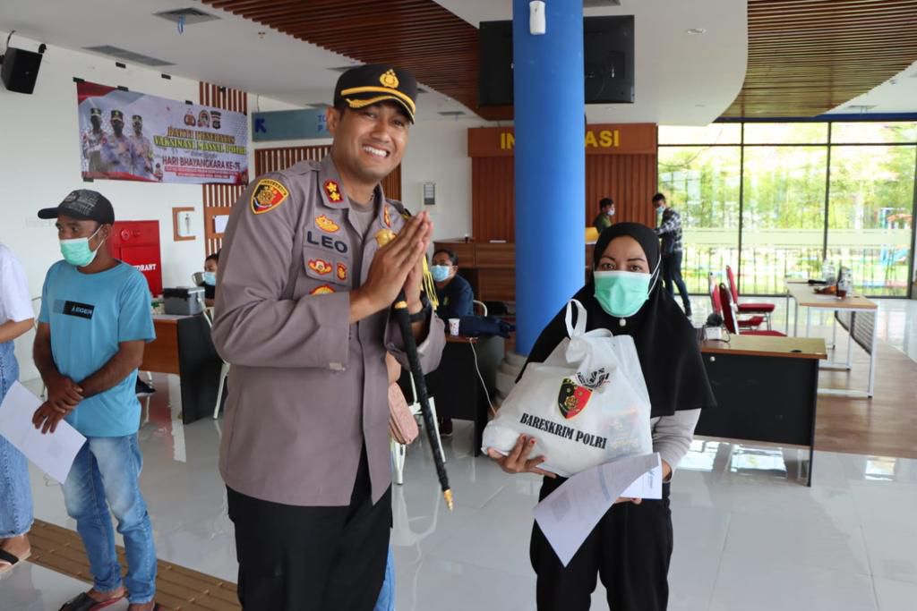 Kapolres Badung juga membagikan paket Sembako kepada masyarakat yang sudah melaksankaan vaksinasi di Terminal type A Mengwi.