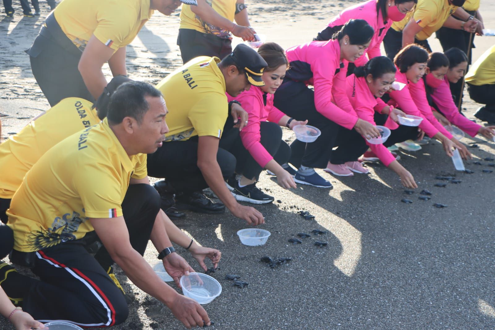 BALI – DETEKSIPOST.COM -;Polda Bali, Polres Badung Ratusan ibu-ibu Bhayangkari dan personil Polres Badung memenuhi bibir Pantai Seseh, di Br. Seseh, Desa Cemagi, Kecamatan Mengwi. Kabupaten Badung. Mereka bersiap melepaskan tukik atau anak penyu ke habitat aslinya. Kamis, (38/7) pagi 07.20 wita