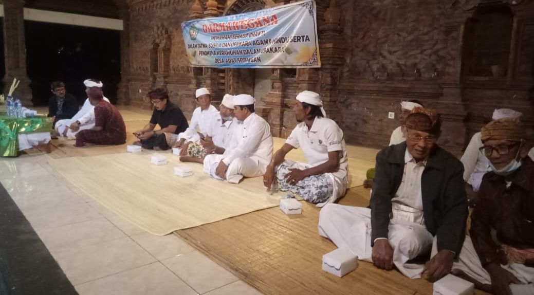 Kegiatan Dharma Wacana tersebut mengambil tema ‘Memahami Srada Bhakti dalam Tatwa, Susila dan Upakara Agama Hindu serta Penomena Kerawuhan dalam Upakara Desa Adat Sobangan’