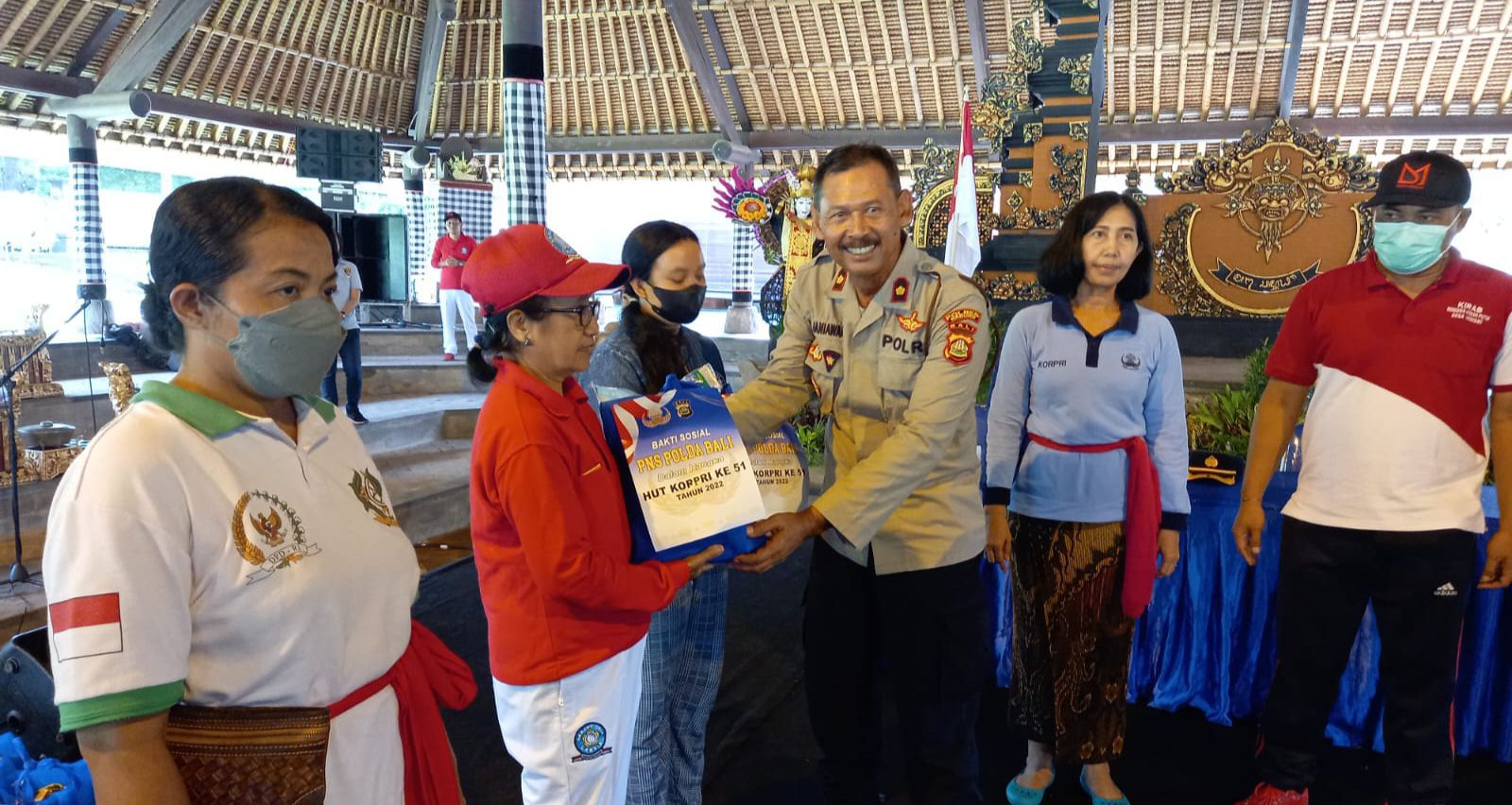 Dalam rangka memperingati Hut ke-51 tahun 2022 Korp Pegawai Republik Indonesia (Korpri) Pegawai Negeri Sipil (PNS) Polda Bali melaksanakan kegiatan Bakti Sosial diwantilan Pura Taman Ayun, Banjar Pande, Desa Mengwi, Kecamatan Mengwi, Kabupaten Badung. Jumat (21/10/22) pukul 09.00 wita