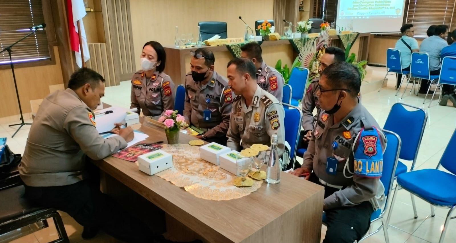 BALI – DETEKSIPOST.COM – Polda Bali, Polres Badung Kepala Kepolisian Resor Badung AKBP Leo Dedy Defretes, SIK, SH, MH menerima kunjungan kerja Tim Puslitbang Polri yang dipimpin oleh Kapuslitbang Polri Brigjen Pol Drs. Iswyoto Agoeng Lesmana Doeta, M.Si, di Aula Mapolres Badung, Bali. Selasa (1/11) siang 13.00 wita.