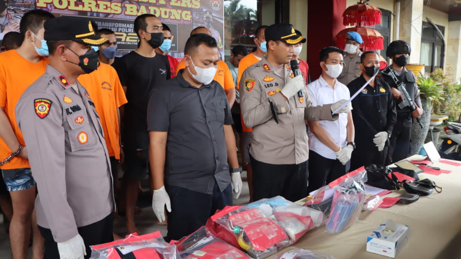 Kapolres didampingi Wakapolres Kompol I Ketut Dana, S.H Kasatreskrim AKP I Putu Ika Prabawa Kartima Utama, S.I.K. bersama para Kanitreskrim, Kasatresnarkoba AKP Picha Armedi, S.I.K menjelaskan pada bulan Oktober 2022 Polres Badung telah berhasil mengungkap 6 kasus tindak pidana dengan pelaku 7 orang dan Satresnarkoba Polres Badung pada bulan Oktober 2022 telah berhasil mengungkap 11 kasus penyalahgunaan narkoba dengan pelaku sebanyak 14 orang.
