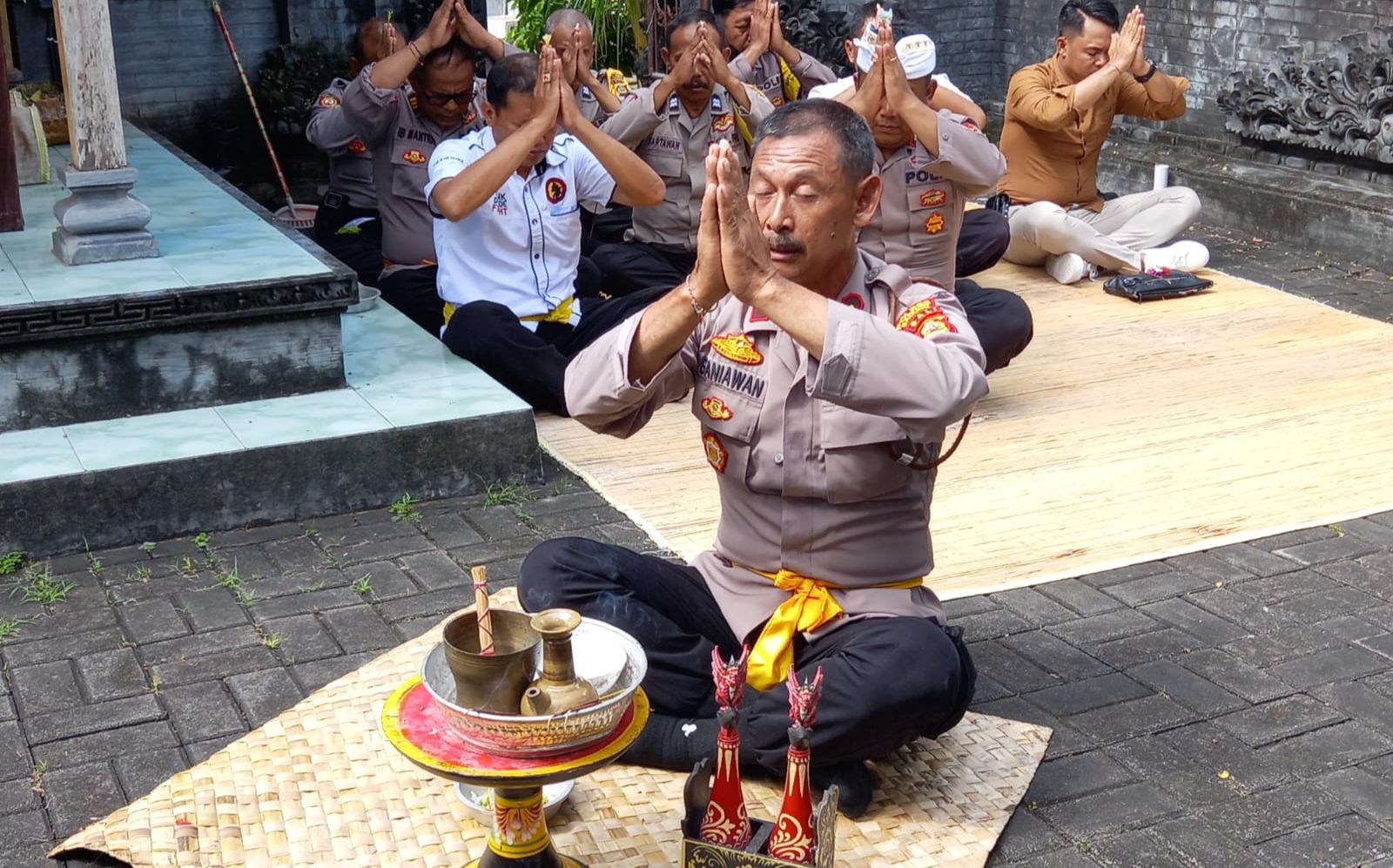 Giat persembahyangan dipimpin langsung oleh Kapolsek Mengwi Kompol Nyoman Darsana, S.H bertempat dipura Giri Eka Loka Polsek Mengwi, Banjar Denkayu Delodan, Desa Werdi Bhuwana, Kecamatan Mengwi, Kabupaten Badung. Selasa (08/11/22) pukul 09.00 wita