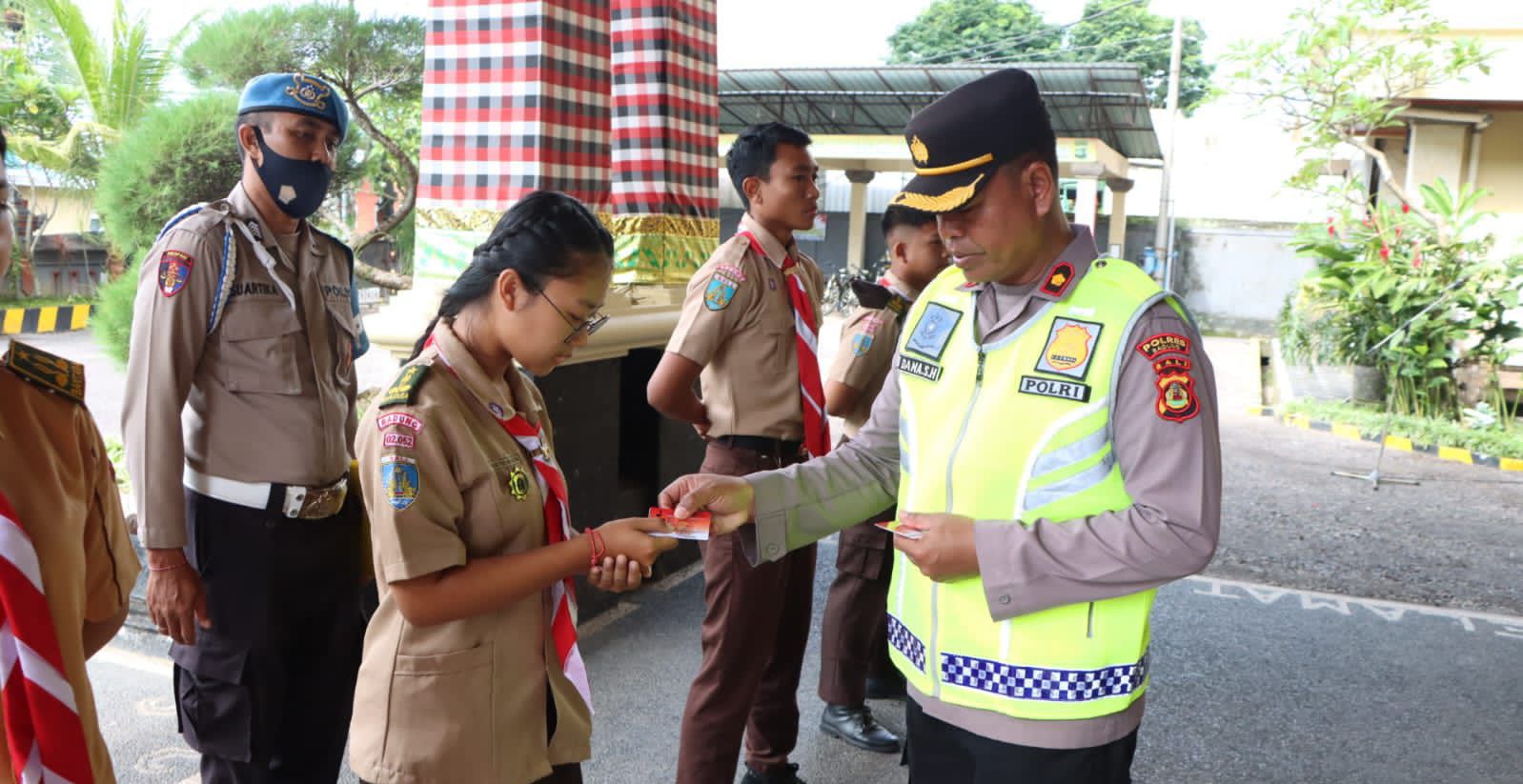 BALI – DETEKSIPOST.COM – Polda Bali, Polres Badung Wakil Kepala Kepolisian Resor Badung Kompol I Ketut Dana, SH melepas 4 orang Saka Bhayangkara Kabupaten Badung dalam rangka kemah Nasional di Kabupaten Palembang Provinsi Sumatera selatan di Lobby Mapolres jalan Kebo Iwa no 1, Mengwi, Kabupaten Badung. Selasa, (8/11) pagi 09.00 wita.