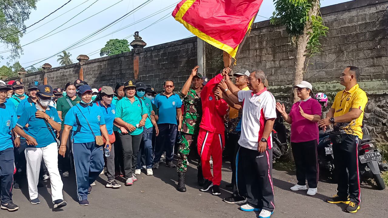 Kapolsek Abiansemal Hadiri Gerak Jalan Santai HUT PGRI Ke 77 Tingkat Kecamatan Abiansemal