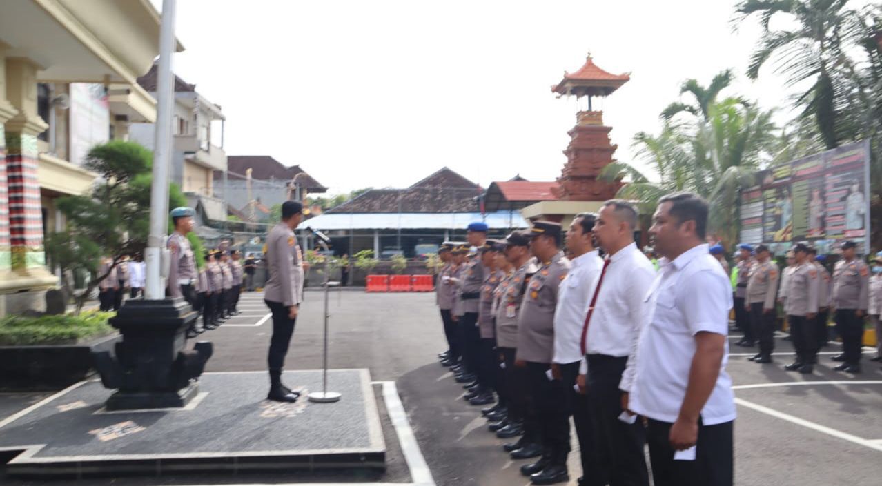 BALI – DETEKSIPOST.COM – Polda Bali, Polres Badung Pengarahan perdana di awal tahun 2023, Kapolres Badung AKBP Leo Dedy Defretes, SIK, SH, MH mengajak seluruh personil mengingat dan merenungkan 4 hal penting di dalam memberikan pelayanan kepada masyarakat. Senin, (9/1) saat jam pimpinan di Lapangan Mapolres Badung. Miliki hubungan yang kuat dengan Tuhan, Rawat diri, rawat dan jaga hubungan baik dengan sesama terutama yang terdekat serta Capailah kesuksesan.