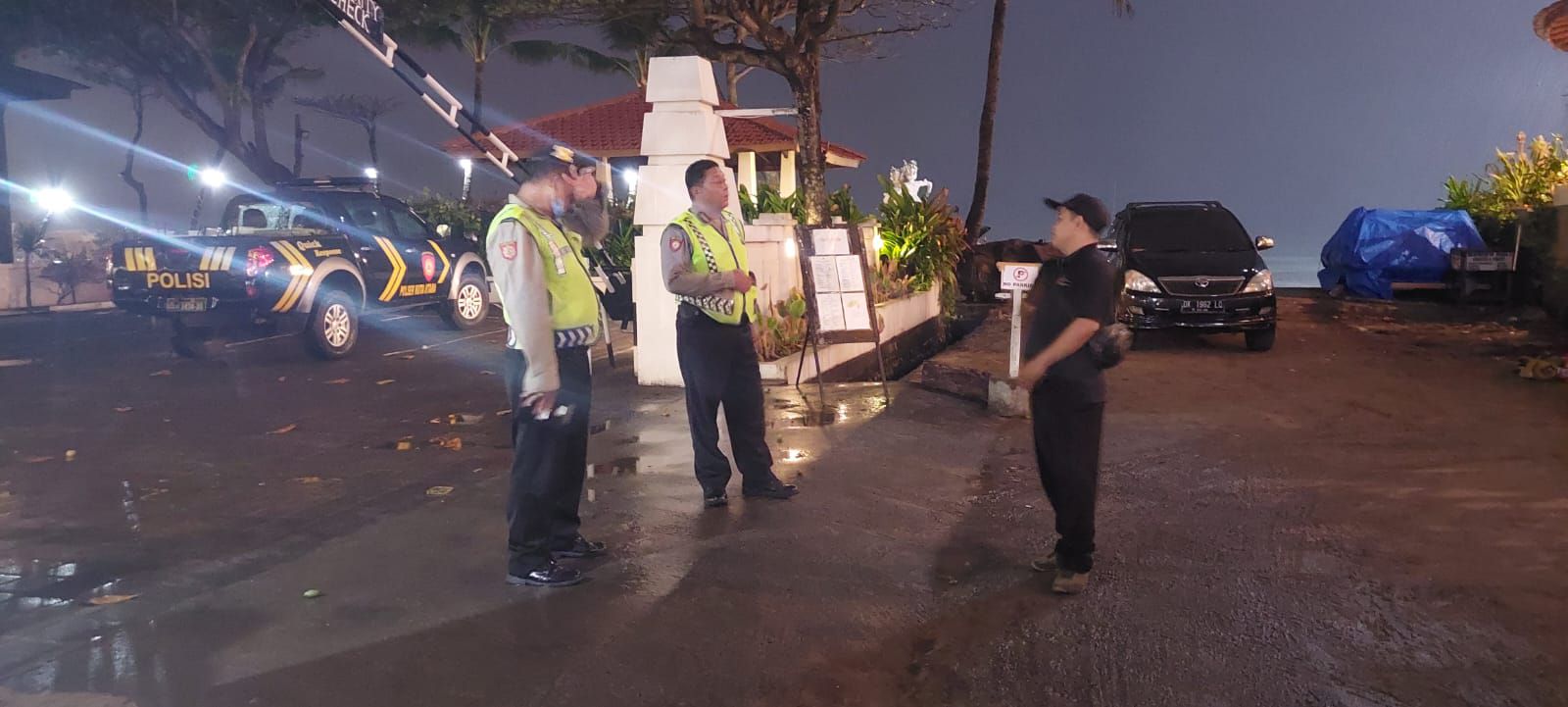 Tampak personil Unit Samapta Polsek Kuta Utara di Pimpin Panit 2 Ipda Made Sutarja melaksanakan patroli di kawasan obyek wisata pantai Berawa, jalan Shortcut, dan jalan Batu Bolong . Selasa (17/1) pukul 22.00 Wita.