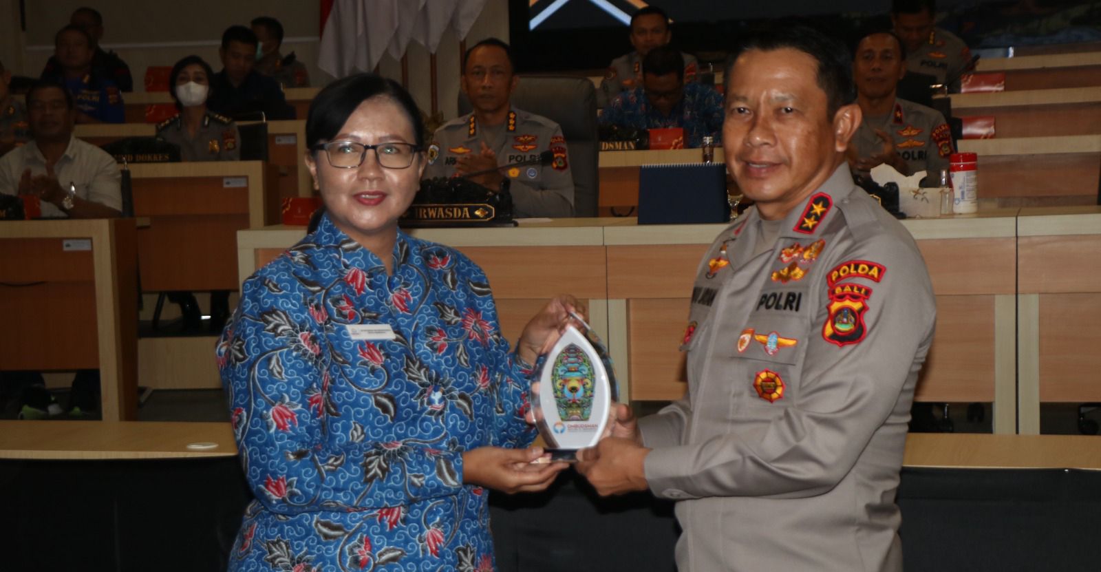 Setelah sambutan dari Kepala Ombudsman RI Perwakilan Bali tersebut, dilaksanakan sesi penyerahan pengahargaan oleh Kepala Ombudsman RI Perwakilan Provinsi Bali dan Kapolda Bali kepada Kapolres dan Kapolresta di depan para peserta yang hadir.
