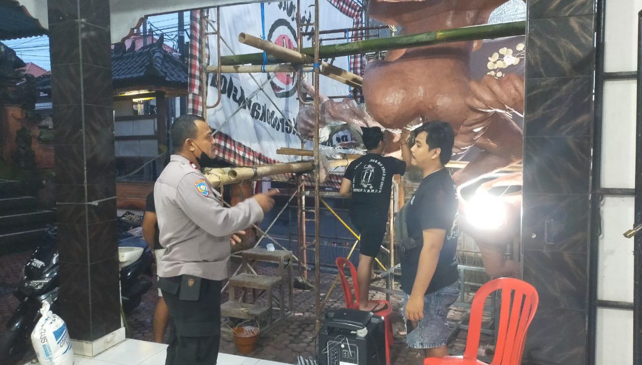 Bhabinkamtibmas menyampaikan pesan pesan Kamtibmas kepada anak anak muda saat membuat Ogoh Ogoh di wilayah binaannya masing masing agar rangkaian Hari Raya Nyepi 2023 berjalan aman, nyaman dan kondusif.