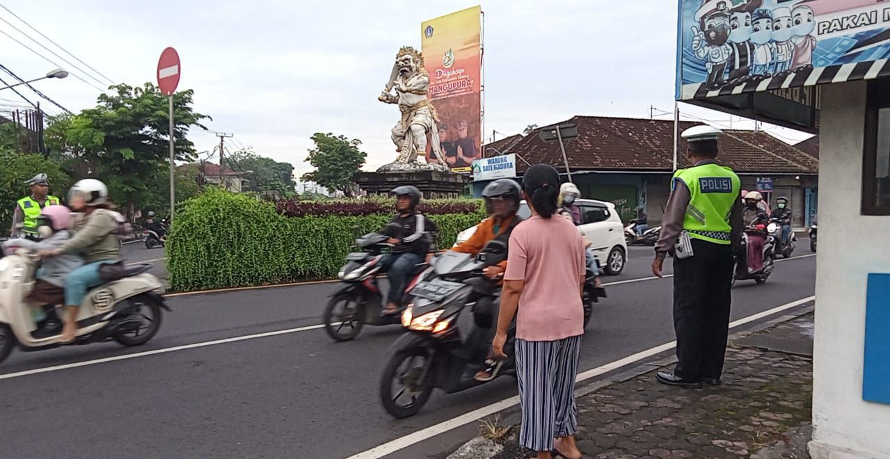 BALI – DETEKSIPOST.COM – Polda Bali, Polres Badung, Polsek Mengwi Aipda I Made Pundung anggota unit lalulintas Polsek Mengwi tidak pernah bosan dalam melaksanakan pengaturan lalulintas untuk melancarkan kendaraan serta memberikan rasa aman dan nyaman kepada pengendara yang melintas disimpang Beringkit, Desa Mengwitani, Kecamatan Mengwi, Kabupaten Badung. Jumat (10/2) pagi.