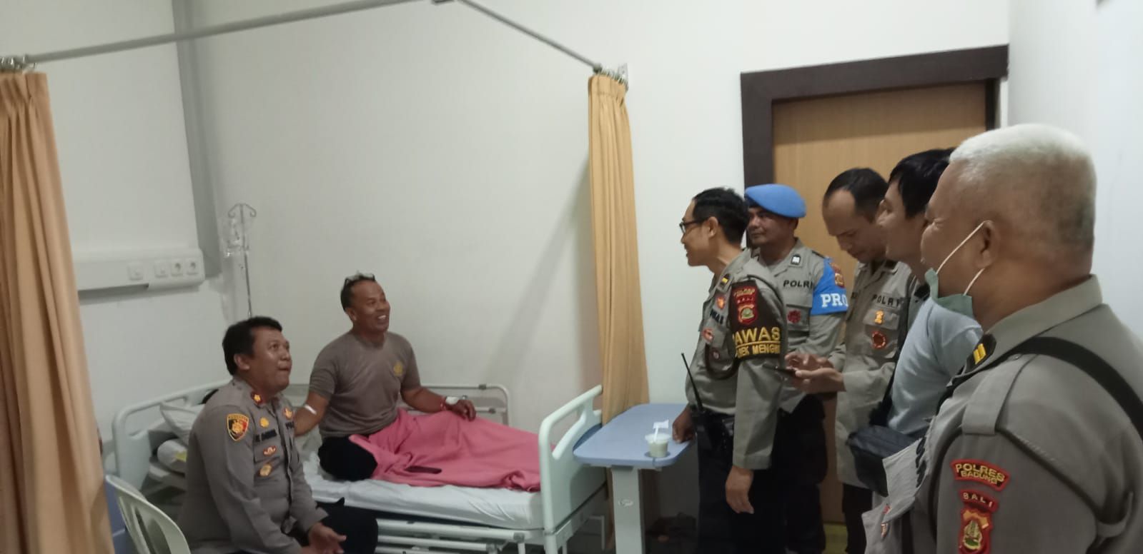 Sebagai wujud kepedulian terhadap anggota, Kapolsek Mengwi Kompol Nyoman Darsana, S.H bersama anggota menjenguk salah satu anggota polsek mengwi yang sakit dan sedang dirawat di Rumah Sakit Bhayangkara Polda Bali, Denpasar. Rabu (1/3) pukul 10.30 wita
